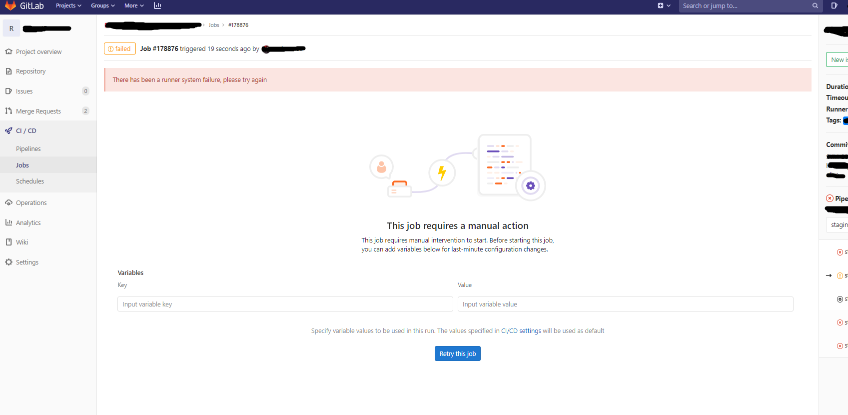 I use Gitlab for doing Continuous Integration and Development and all of a sudden I get this error message “There has been a runner system failure, please try again”
